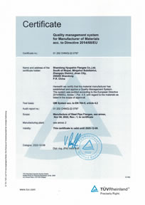 · Certification Scope: Manufacture of Steel Pipe Flanges;