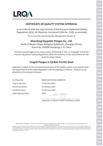 · Certificate Scope: Manufacturing of Forged Flanges, See annex to certificate;