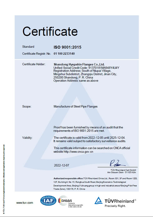 Shandong Hyupshin Flanges Co., Ltd, ISO9001:2008 Certified, Korean Standards Association Certified, Flanges Manufacturer